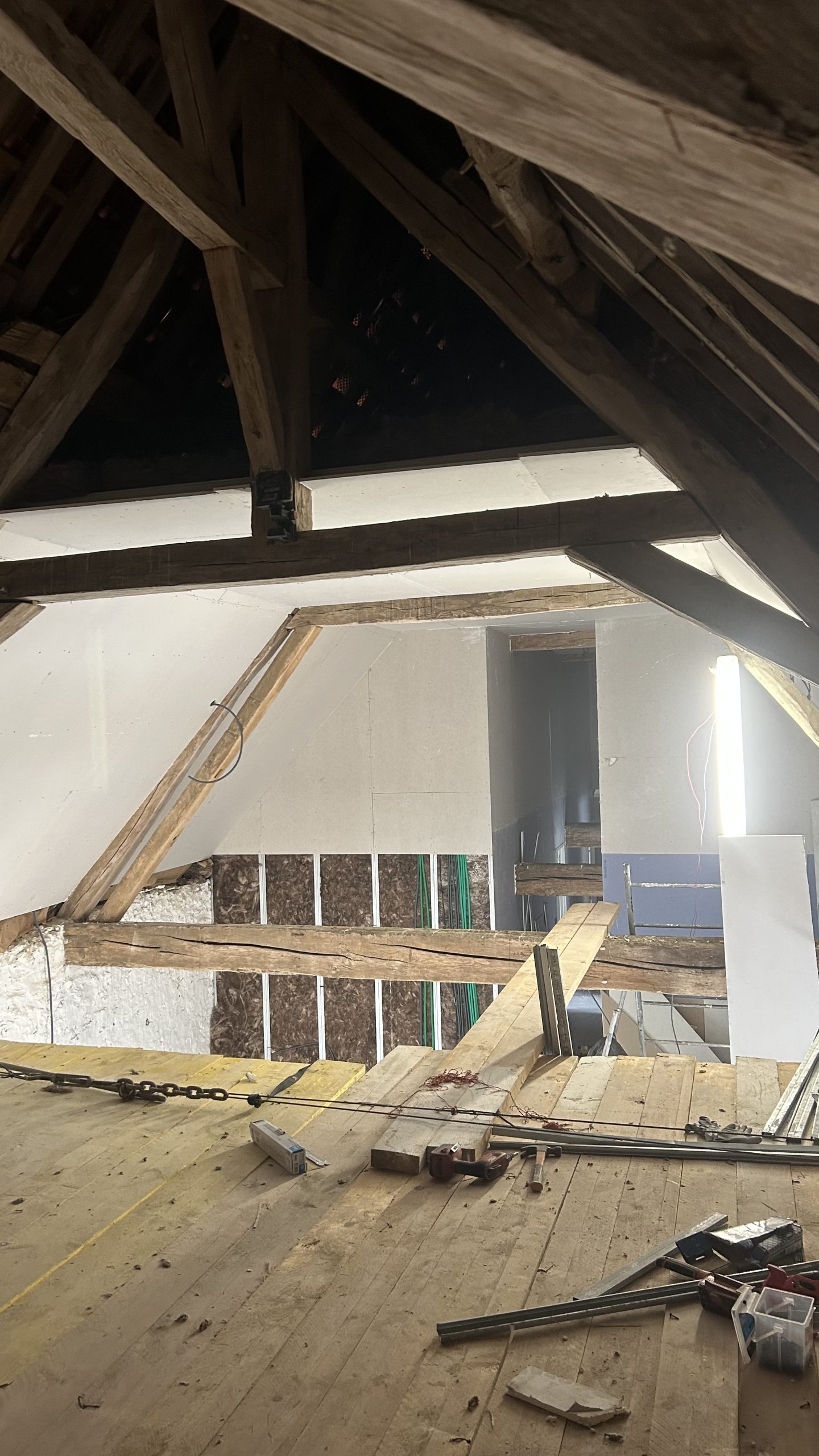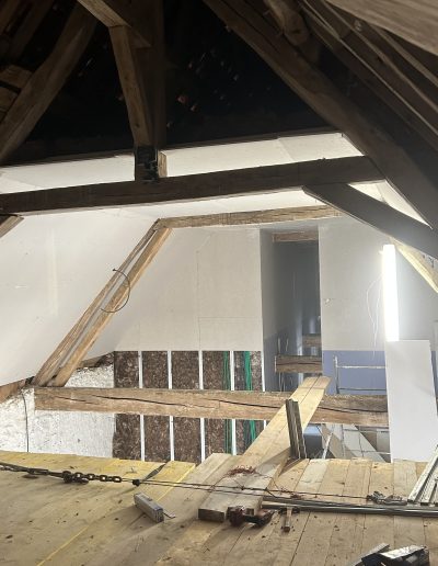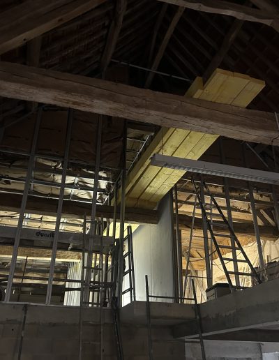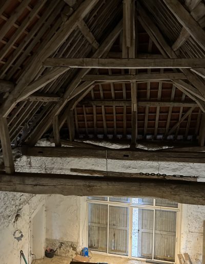Ce projet témoigne de notre expertise dans la réhabilitation de volumes atypiques. Nous avons travaillé en étroite collaboration pour la mise en sécurité de la charpente traditionnelle, avant de procéder à l’aménagement complet des espaces.