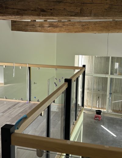 Finitions : Création de mezzanines et d’espaces ouverts baignés de lumière grâce à l’installation de larges menuiseries.
