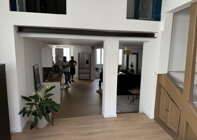 Ce projet de rénovation à Reims démontre l’expertise de CG RENOV dans la gestion globale du second œuvre. Nous avons transformé une structure complexe avec des réseaux apparents en une pièce à vivre épurée, intégrant une cuisine ouverte et un salon lumineux.